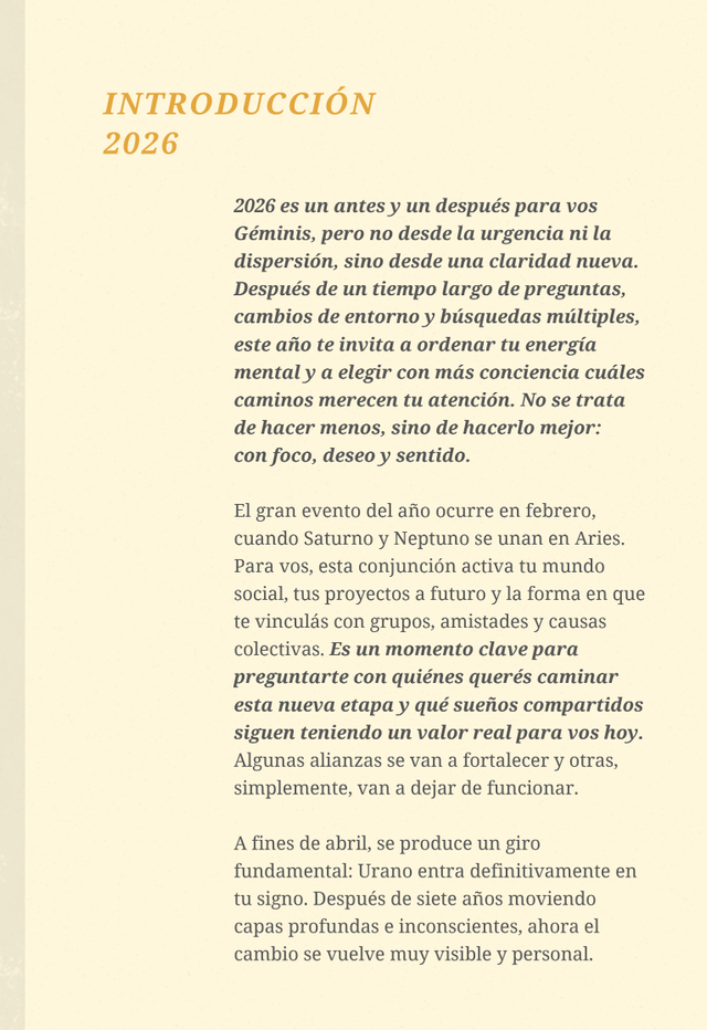 El Horóscopo 2026 es eso: una guía hito por hito — desde la entrada de Urano a tu signo hasta los Eclipses, Júpiter en Leo, los planetas retrógrados y mucho más — analizando cómo cada movimiento te impacta y qué posibilidades habilita.